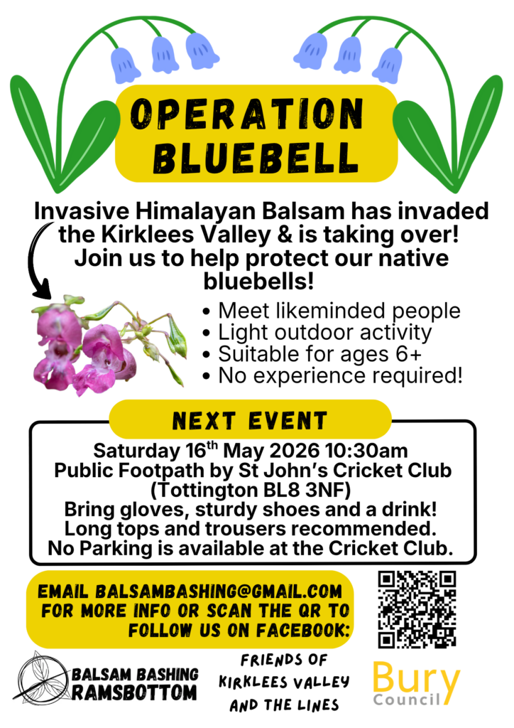 We will soon be starting our Himalayan Balsam removal for 2026. Himalayan Balsam is a highly invasive plant which is damaging to the environment. It crowds our native plants and can contribute to flooding by destabilising riverbanks (as you may know already!). Our first session is at Kirklees Valley & we will be working behind Tottington St John’s Cricket Club (in the woods 👀). We would love to have a good turn out as we know the area means a lot to the community and it really needs a big push to get this plant under control there.